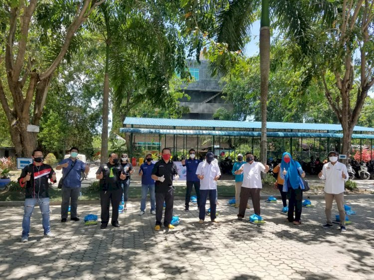 Batam, owntalk.co.id – Forum Pariwisata Kepri Peduli (FPKP) melakukan kegiatan berbagi kepada pelaku pariwisata yang terdampak covid-19 yang berlangsung di Halaman Parkir Gedung Graha Pena, Batam Centre, (22/4). Sebanyak 100 paket sembako dibagikan kepada pelaku pariwisata di Kepri.