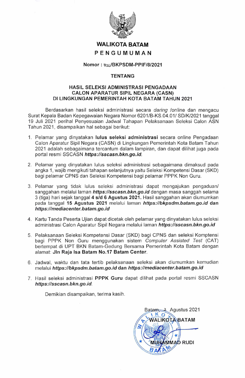 Beranda Kabar Daerah Batam Pengumuman Nama Peserta yang Lulus Seleksi Administrasi CASN 2021 Batam Batam, Kabar Daerah Pengumuman Nama Peserta yang Lulus Seleksi Administrasi CASN 2021 BatamAnwar AnasAgustus 4, 2021Agustus 4, 2021 Ilustrasi PNS, (foto: owntalk) Untuk melihat nama-nama peserta yang lulus, buka link dibawah ini : https://drive.google.com/file/d/1H-_gbsT9JO_dM3SCiiOrYk0zMx4fB2yl/view