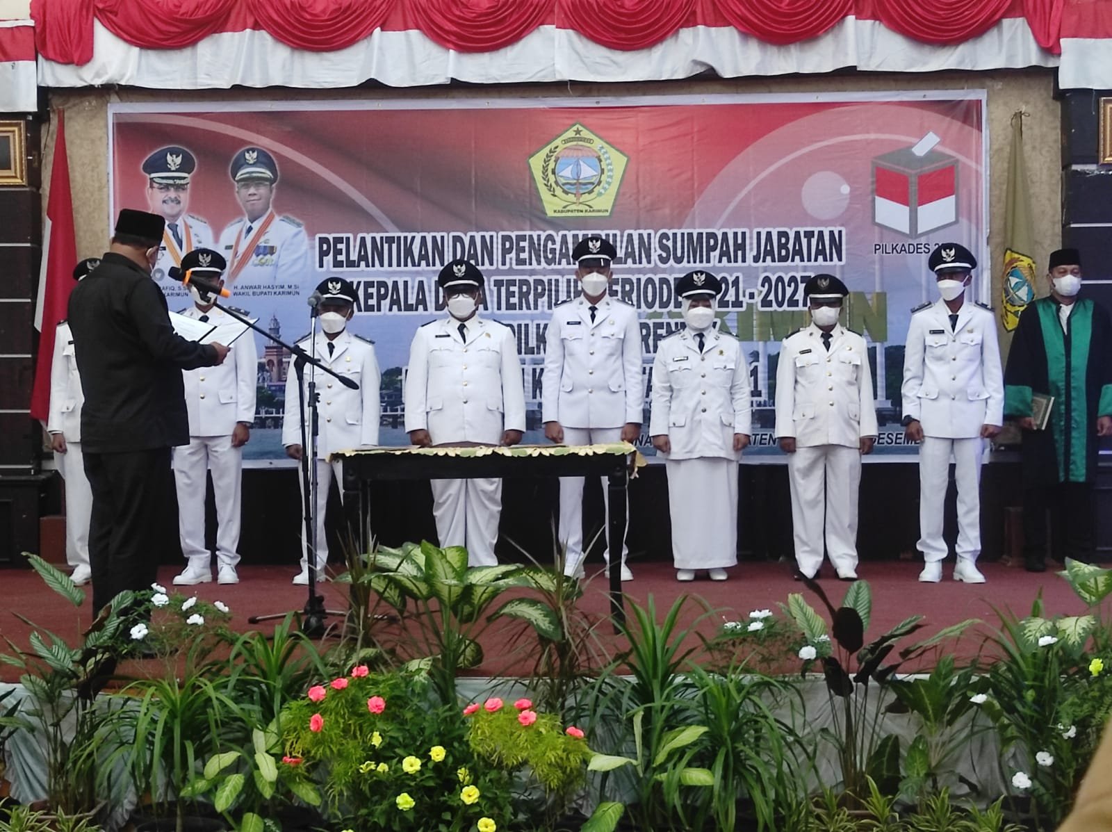 Karimun, Owntalk.co.id – Bupati Karimun, Aunur Rapiq melantik dan mengambil sumpah jabatan 8 kepala desa terpilih periode 2021-2027 di Gedung Nasional, Senin (13/12/2021).