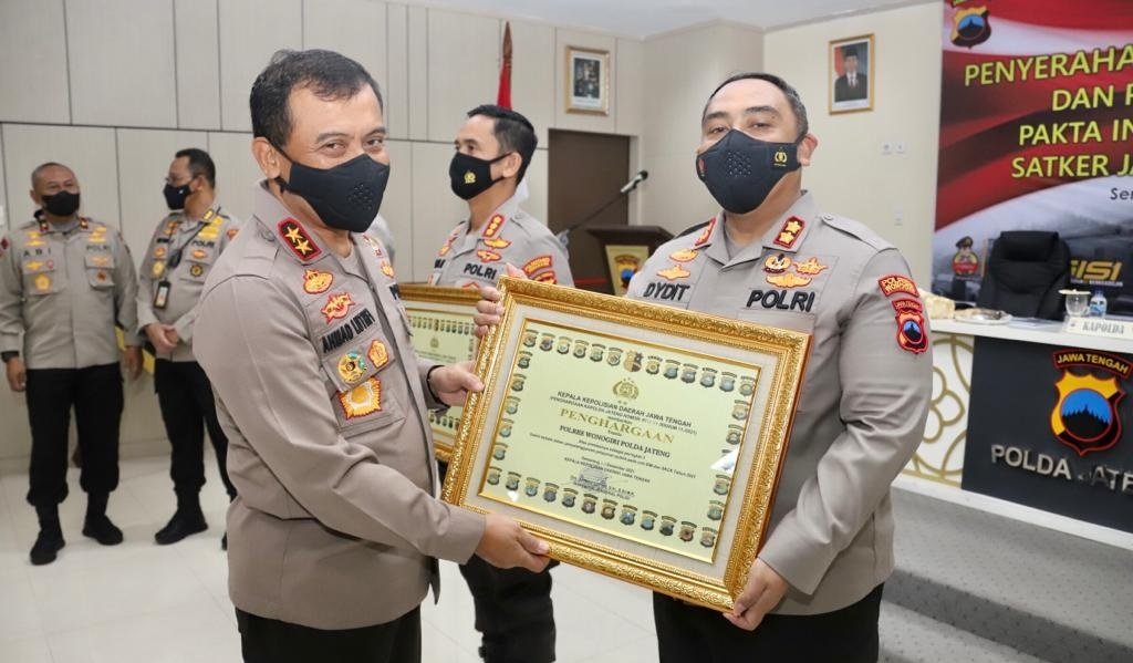 Kapolres Wonogiri AKBP Dydit Dwi Susanto, menerima penghargaan tersebut dari Kapolda Jateng Irjen Pol Ahmad Luthf di Mapolda setempat, Selasa (21/12/2021) kemarin.
