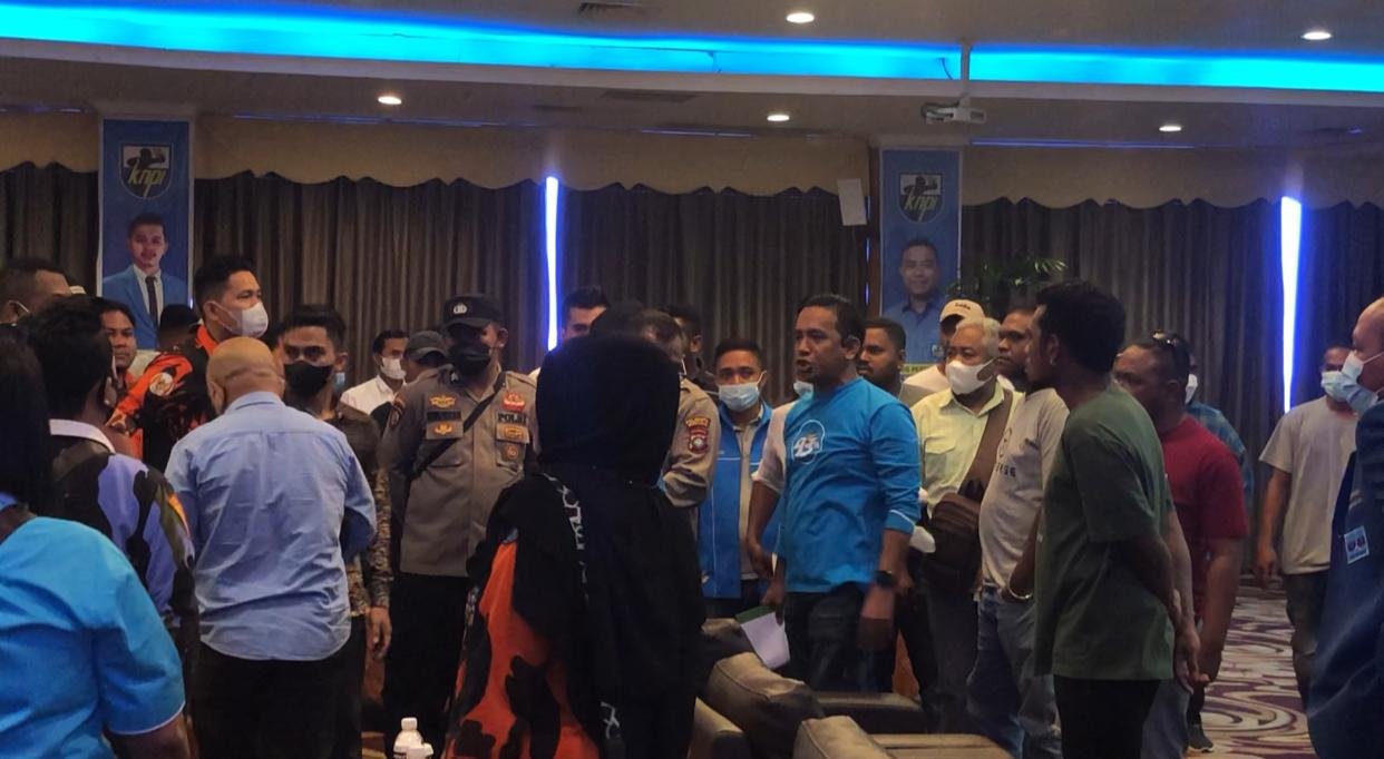 Pihak kepolisian meminta peserta Musda untuk meninggalkan ruangan agar dapat mencegah potensi kericuhan.