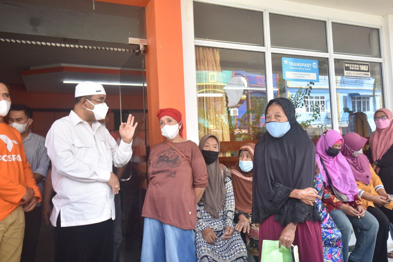 Karimun, Owntalk.co.id – Bupati Karimun Dr H Aunur Rafiq S.Sos M.Si memantau secara langsung penyaluran uang program Bantuan Langsung Tunai (BLT) minyak goreng (migor) dan Bantuan Sosial Sembako (BSS) tahun 2022 di Kantor PT Pos Indonesia Tanjungbalai Karimun, Kepulauan Riau, Sabtu (16/4/2022) pagi.