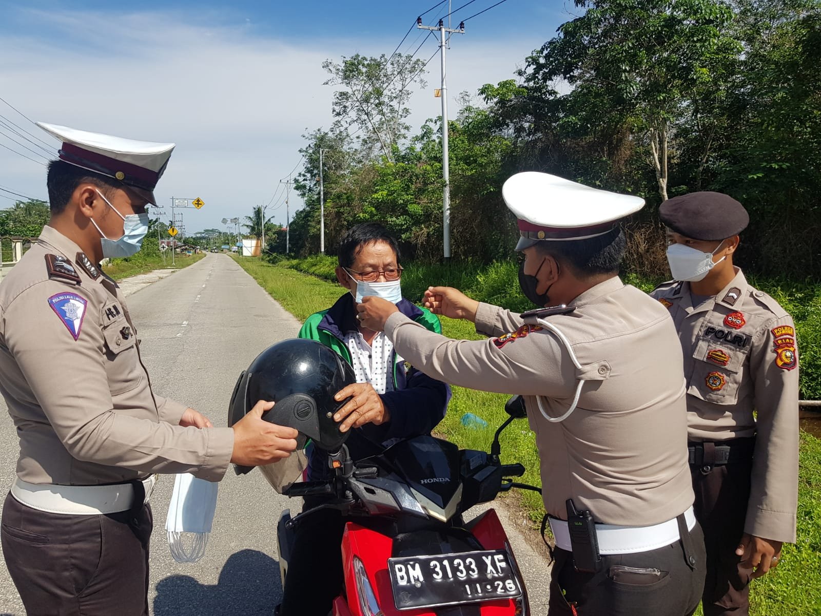 Imbauan itu disampaikan Kapolres Kepulauan Meranti AKBP Andi Yul LTG SH SIK MH, melalui Kabag Ops Kompol Yudi Setiawan SH MH, Sabtu (28/5/2022) pagi, saat membagikan masker secara gratis dan pengecekan vaksinasi terhadap pengguna jalan yang melintas di depan Mako Polres, Gogok Darussalam, Kecamatan Tebingtinggi Barat.
