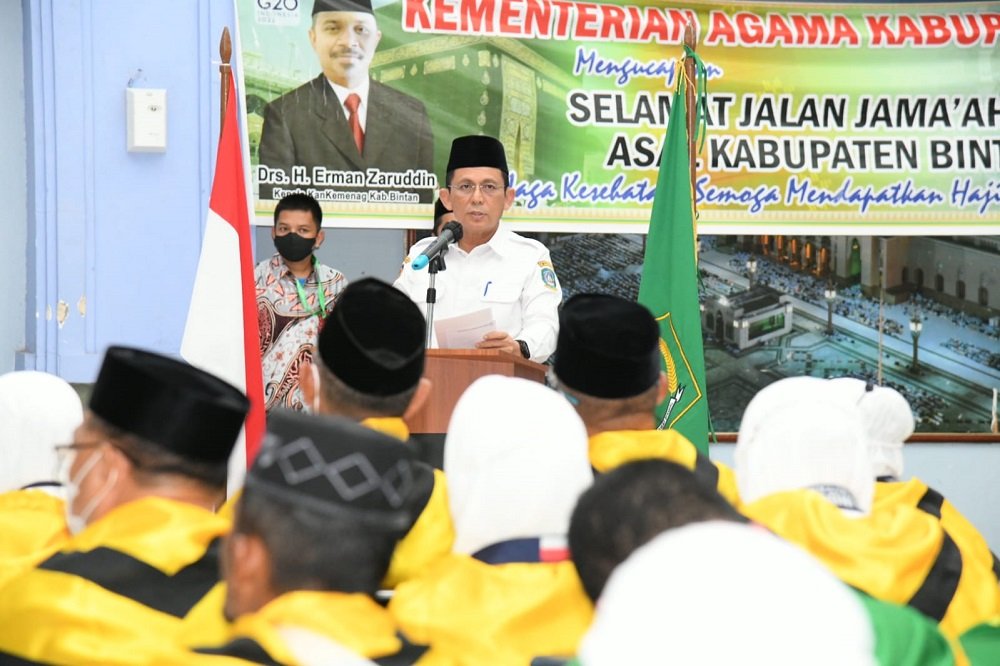Kepada Calon Jemaah Haji, Ansar mewakili Pemerintah Provinsi Kepulauan Riau dan Pemerintah Kabupaten/ Kota Provinsi Kepulauan Riau mengucapkan selamat menunaikan ibadah haji dan berpesan menjaga nama baik bangsa di tanah suci.