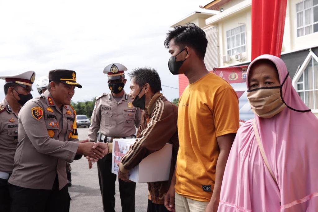 “Dalam rangka menyambut hari Bhayangkara ke-76 i ni, kita dari Polres Kepulauan Meranti telah melakukan kegiatan kemanusiaan, seperti donor darah, vaksinasi, bansos, baksos, dan bakti religi, serta kegiatan fun bike. Untuk hari ini, dilakukan penyaluran bansos yang dilaksanakan serentak oleh Polri,” ucapnya.