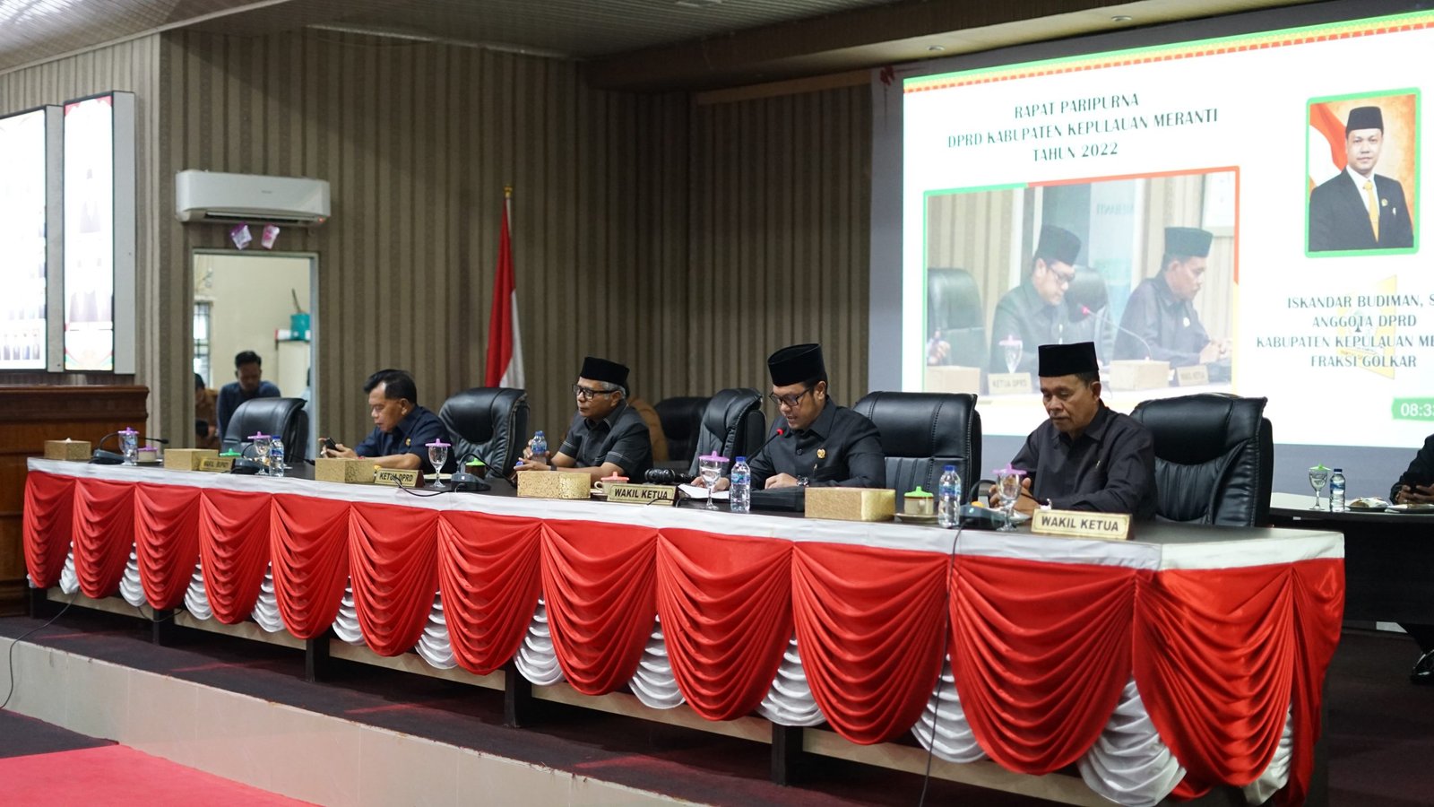 Iskandar Budiman dalam sambutannya mengatakan, rapat paripurna dilaksanakan atas Keputusan Badan Musyawarah DPRD Kabupaten Kepulauan Meranti dengan nomor : 10/Kpts-DPRD/KBM/VII/2022, tentang perubahan jadwal kegiatan DPRD Kabupaten Kepulauan Meranti dengan agenda pokok yaitu pengumuman dan pengambilan keputusan terhadap pemberhentian ketua DPRD Kabupaten Kepulauan Meranti masa jabatan 2019-2024 sekaligus pengumuman calon pengganti ketua DPRD Kabupaten Kepulauan Meranti sisa masa jabatan 2019-2024, dan juga pengumuman penetapan pimpinan DPRD sementara Kabupaten Kepulauan Meranti.
