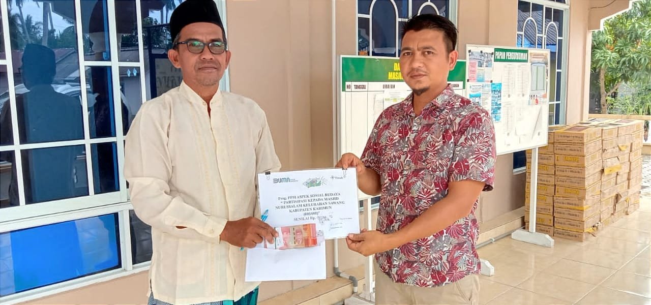 Sawang, Owntalk.co.id — Untuk mendukung aktivitas keagamaan di Masjid Nurussalam Mukalimus Kelurahan Sawang, Kecamatan Kundur Barat, Kabupaten Karimun, PT Timah menyerahkan bantuan sarana dan prasarana berupa soundsystem ke Masjid ini, Jumat (22/7/2022).
