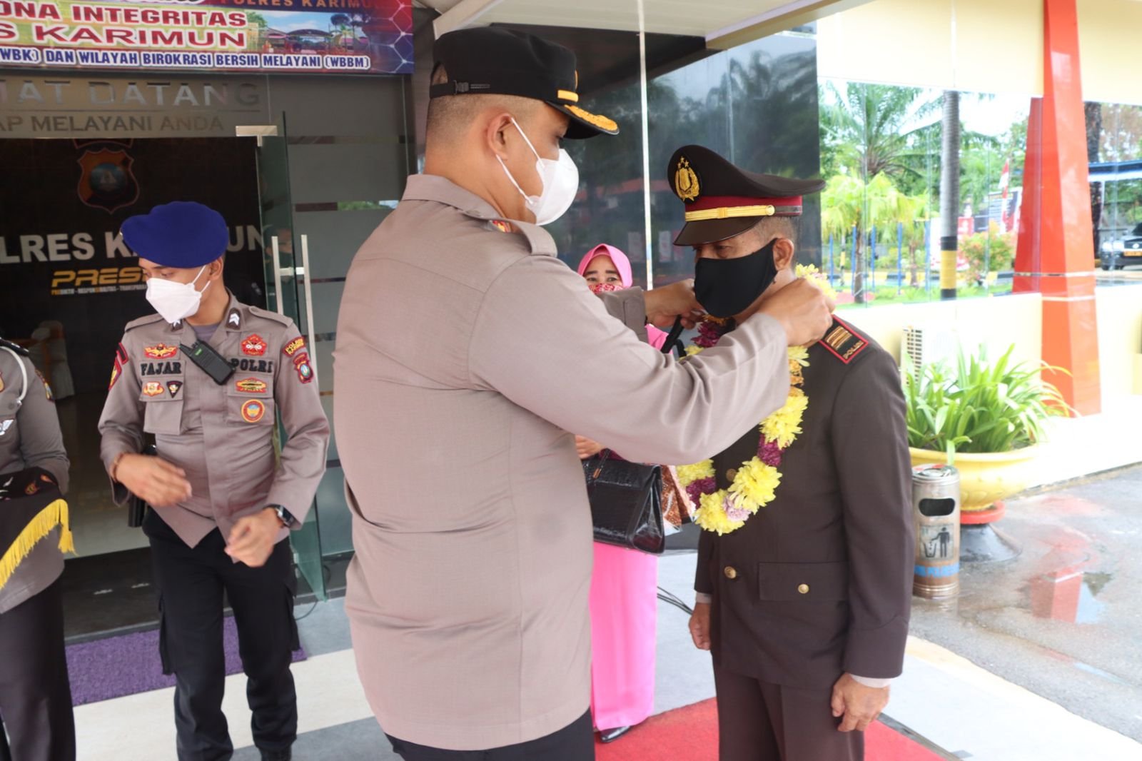 Selanjutnya Kapolres Karimun beserta staf dan Bhayangkari menghantar AKP Untung Murniadi beserta keluarga sampai ke pintu gerbang Polres Karimun. (koko)