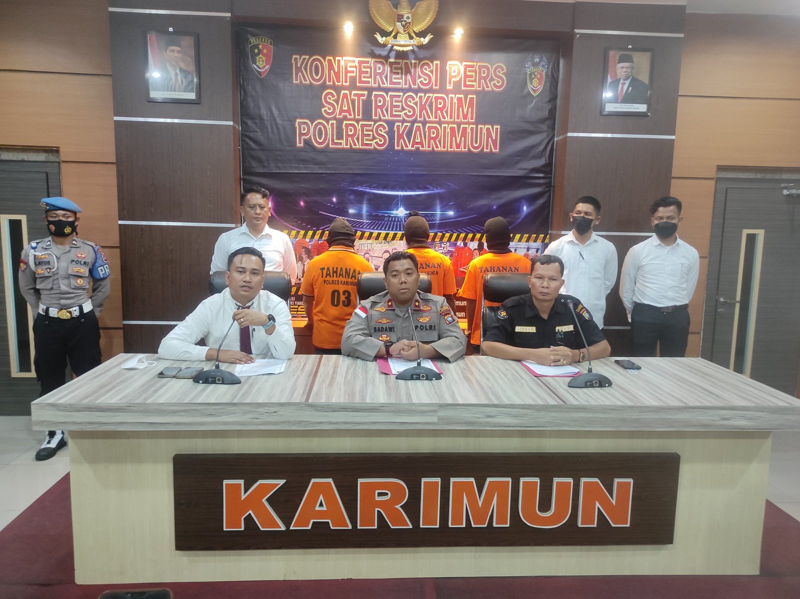 Pada hari ini Senin 22 Agustus 2022 Sat Reskrim Polres Karimun menggelar konferensi pers terkait pengungkapan tindak pidana perjudian. Kegiatan ini dipimpin Wakapolres Karimun Kompol Syaiful Badawi, S.I.K dan didampingi oleh Kasat Reskrim AKP Arsyad Riyandi, S.IP, M.H dan Kasubsipenmas IPTU Jordan Manurung.