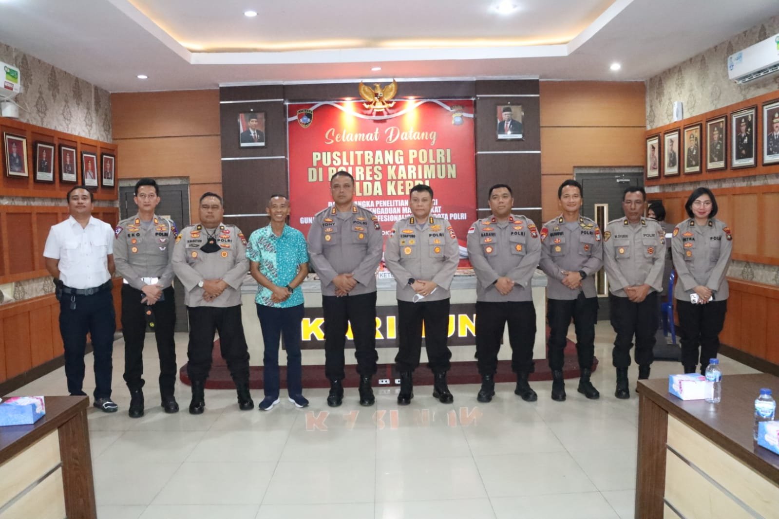 Mereka datang untuk melaksanakan penelitian strategi pelayanan pengaduan masyarakat (Dumas) guna meningkatkan profesionalisme anggota Polri. Kedatangan tim Puslitbang Polri disambut langsung Kapolres Karimun AKBP Tony Pantano, S.I.K, SH.
