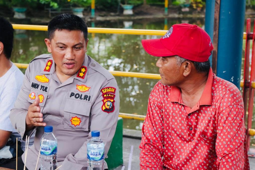 Uniknya, AKBP Andi Yul saat itu mengajak petugas taman dan warga yang lewat untuk duduk bersamanya di tubir Telaga Bening, Jalan Merdeka Selatpanjang.