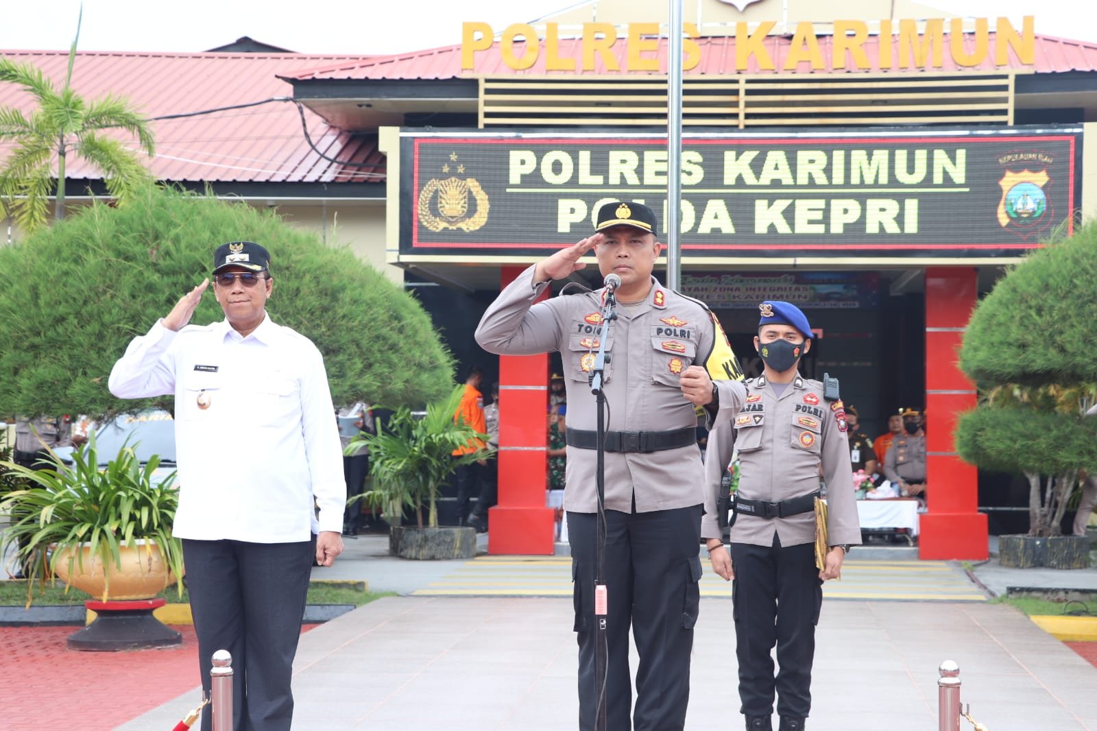 Kegiatan Apel Gelar Pasukan Operasi Lilin 2022 di dampingi Wakil Bupati Karimun Anwar Hasyim, dan di hadiri Ketua DPRD, Dandim 0317/Tbk, Dan lanal Tbk, Kejari Karimun, serta Intansi terkait lainnya.