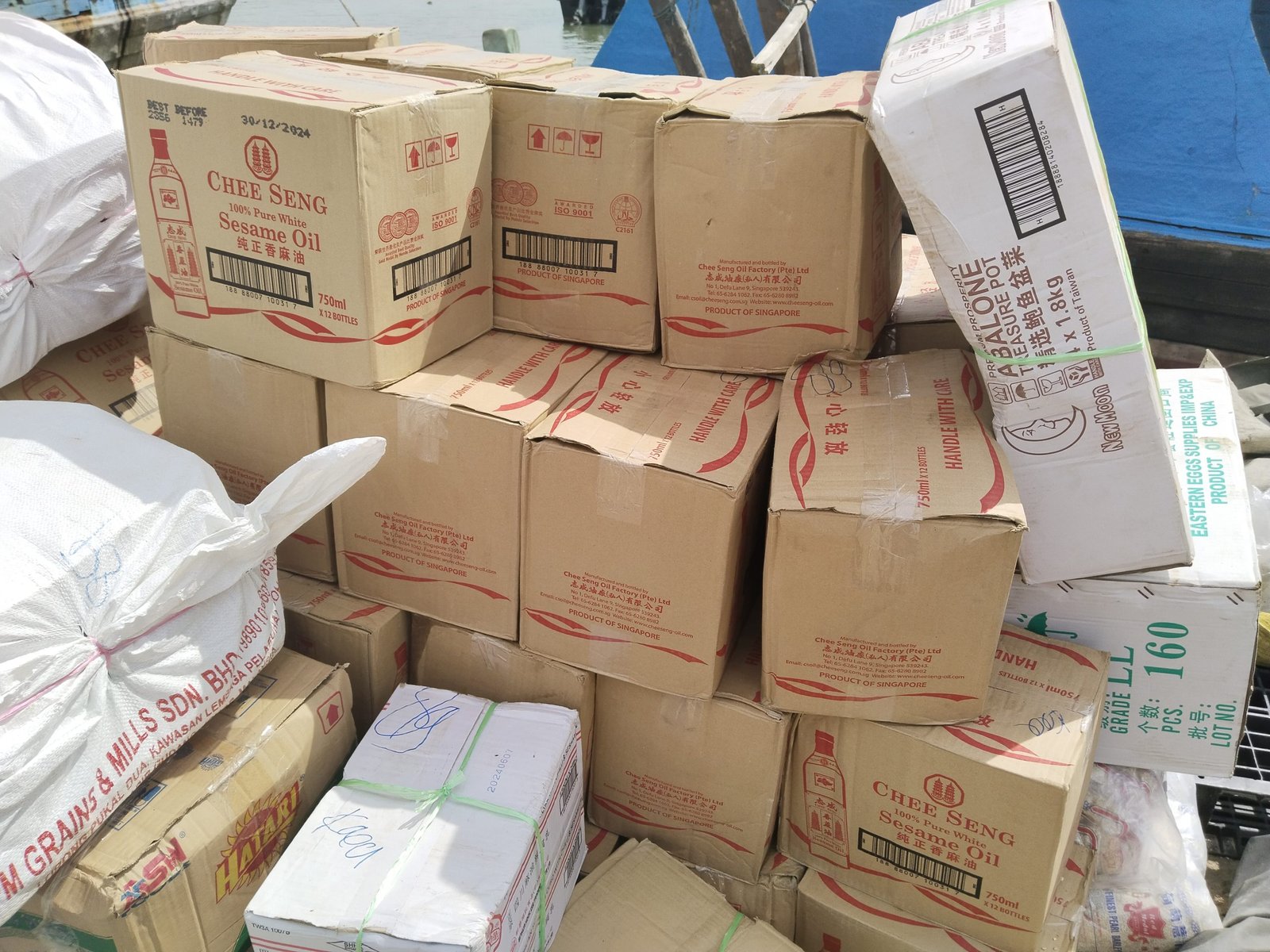 Barang-barang tersebut dikemas menggunakan karung goni dan kardus paketan dan diangkat menggunakan mobil box hingga lori.