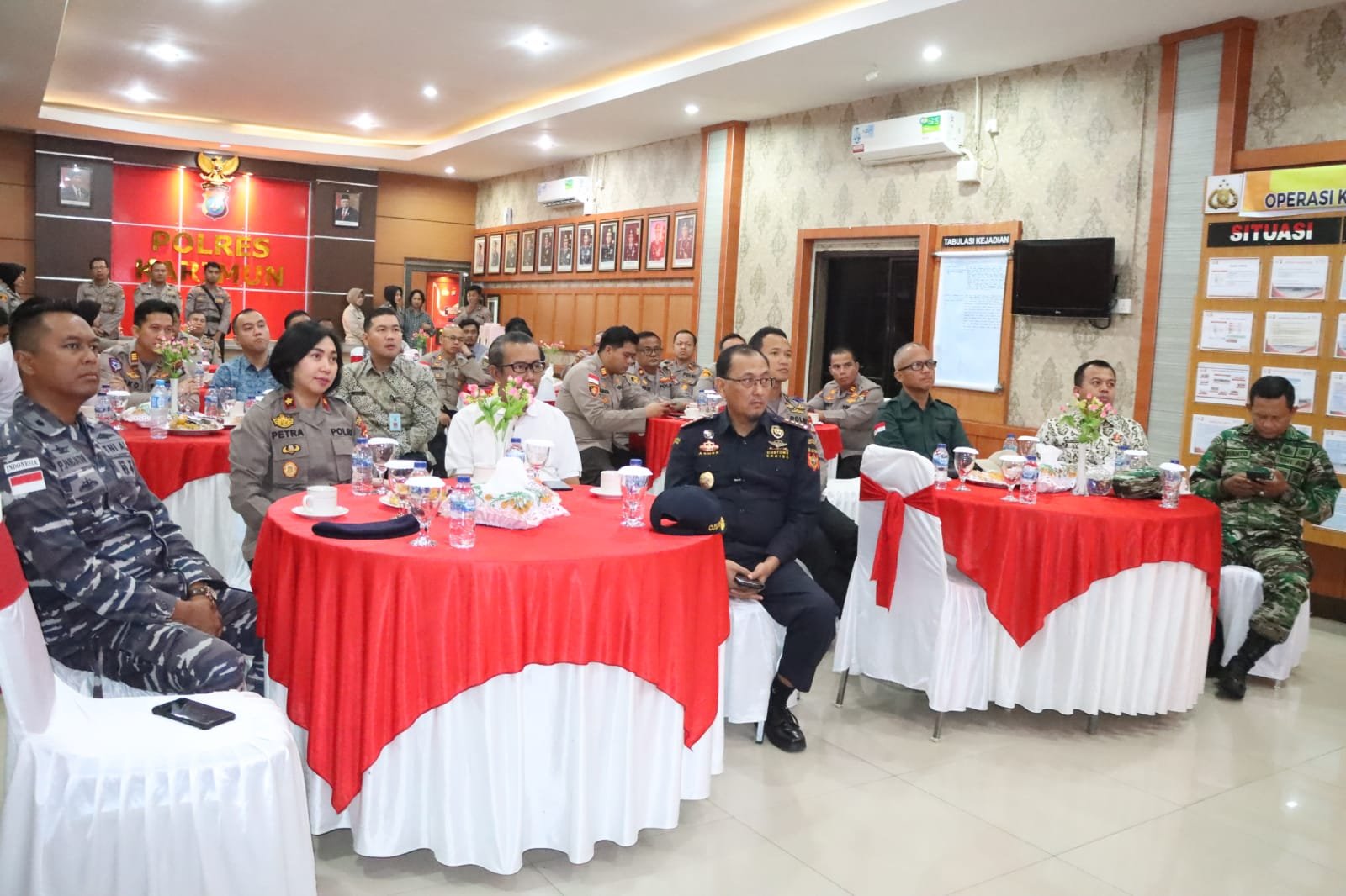 Polres Karimun dan Polres Jajaran juga melaksanakannya secara daring. Kegiatan syukuran oleh Polres Karimun dilaksanakan di ruang rapat utama Polres Karimun yang dihadiri oleh Wakapolres Karimun Kompol Petra CK Tumengkol, S.I.K., pejabat utama Polres Karimun serta tamu undangan diantaranya Ketua DPRD Kab. Karimun, Kepala KPPBC, Lanal Tbk, Kodim 0317 Tbk, Imigrasi Kab. Karimun dan Rutan Kelas II Tbk.