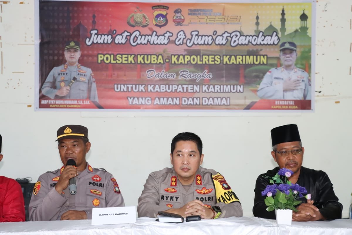 Kegiatan Jumat curhat ini juga dilaksanakan secara serentak di seluruh Indonesia baik Polres maupun Polsek jajaran. Dalam kesempatan tersebut Kapolres Karimun AKBP Ryky W. Muharam, S.H, S.I.K. langsung menyambangi masyarakat di Kec. Kundur Utara.
