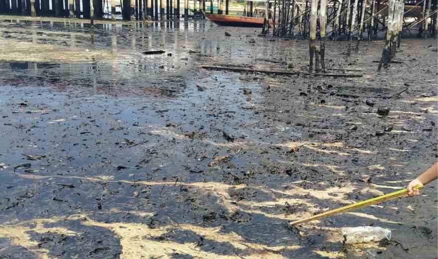 Limbah Minyak Hitam Pekat yang mencemari Pantai Kampung Melayu Nongsa
