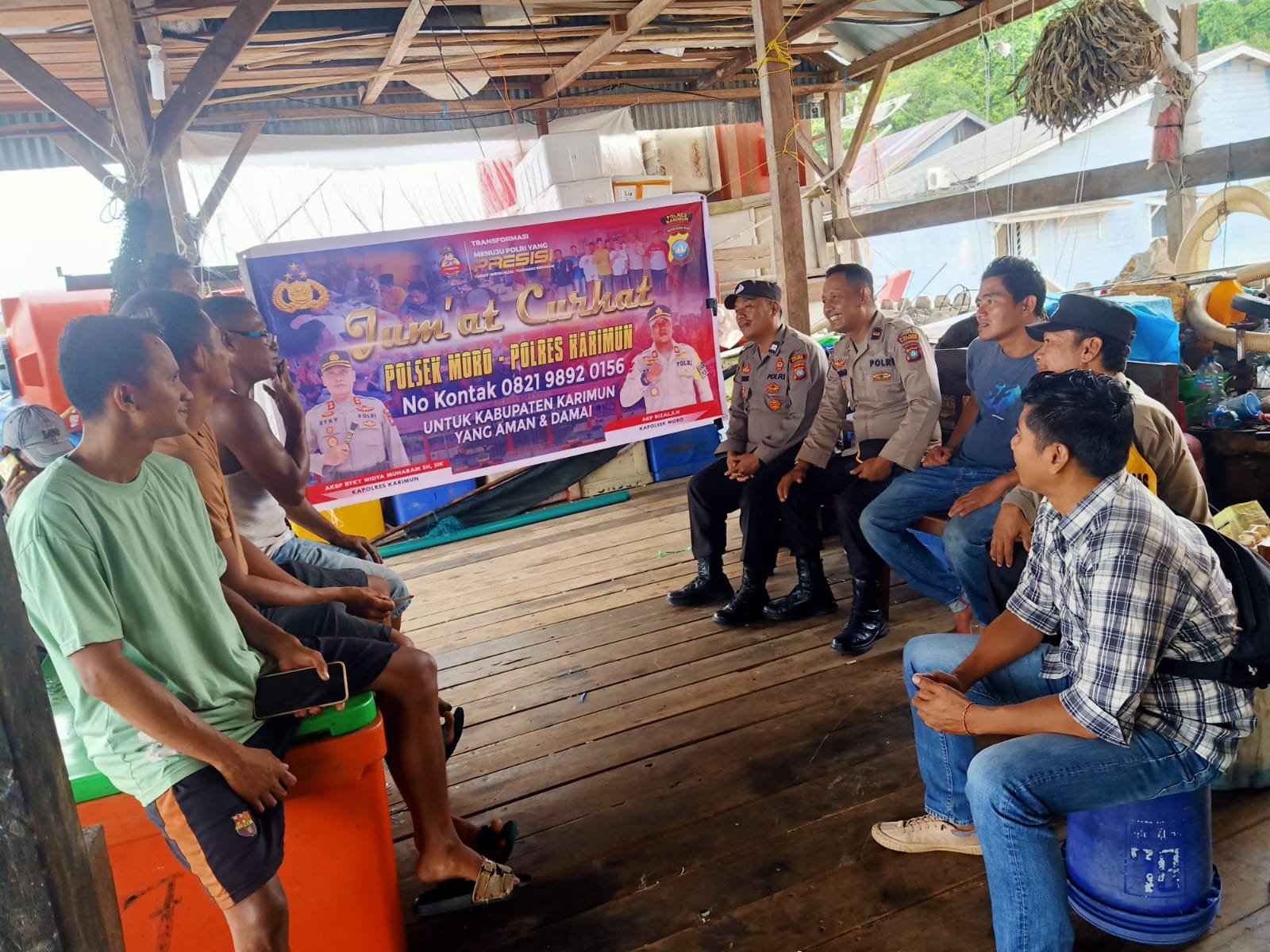Karimun, Owntalk.co.id – Kapolsek Moro yang diwakili Kanit Shabara IPDA Sutarman beserta personil kembali mendengar keluh kesah masyarakat melalui kegiatan Jumat curhat dengan nelayan Kecamatan Moro. Jumat 08/09/2023.