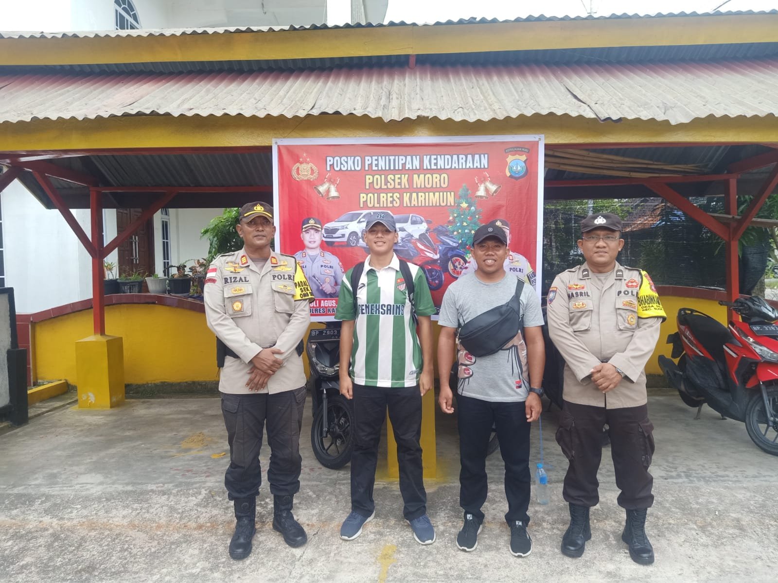 Kapolsek Moro AKP Rizal Rahim SH. Menyampaikan bagi masyarakat khususnya Kecamatan Moro yang akan berpergian atau merayakan liburan Natal dan Tahun Baru, kami menyiapkan tempat penitipan kendaraan sepeda motor roda dua.