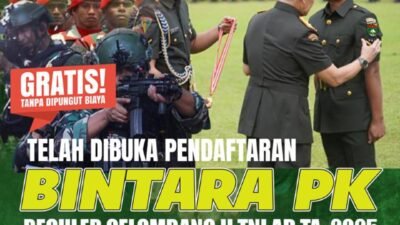 Pendaftaran prajurit Bintara PK Gelombang II T.A 2025 melalui online dibuka sejak 11 September 2025 hingga 9 Oktober 2025 pada laman https://ad.rekrutmen-tni.mil.id.