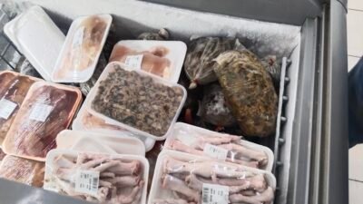 ”Sewaktu kita lihat daging dan ayam tersebut yang dikemas dalam bungkus plastik tidak memiliki BPOM dan tanggal Kadarluarsanya dan tentunya ini sangat tidak boleh diperjualbelikan,” katanya.