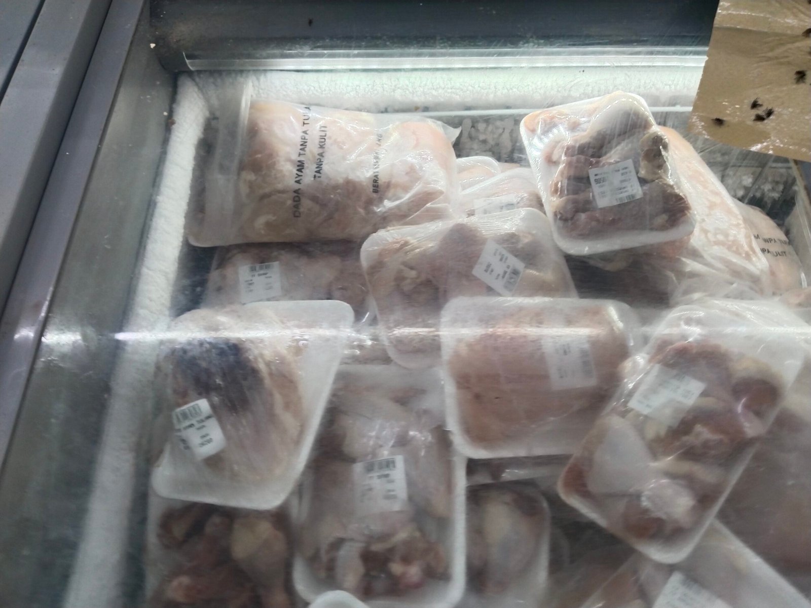 ”Sewaktu kita lihat daging dan ayam tersebut yang dikemas dalam bungkus plastik tidak memiliki BPOM dan tanggal Kadarluarsanya dan tentunya ini sangat tidak boleh diperjualbelikan,” katanya.