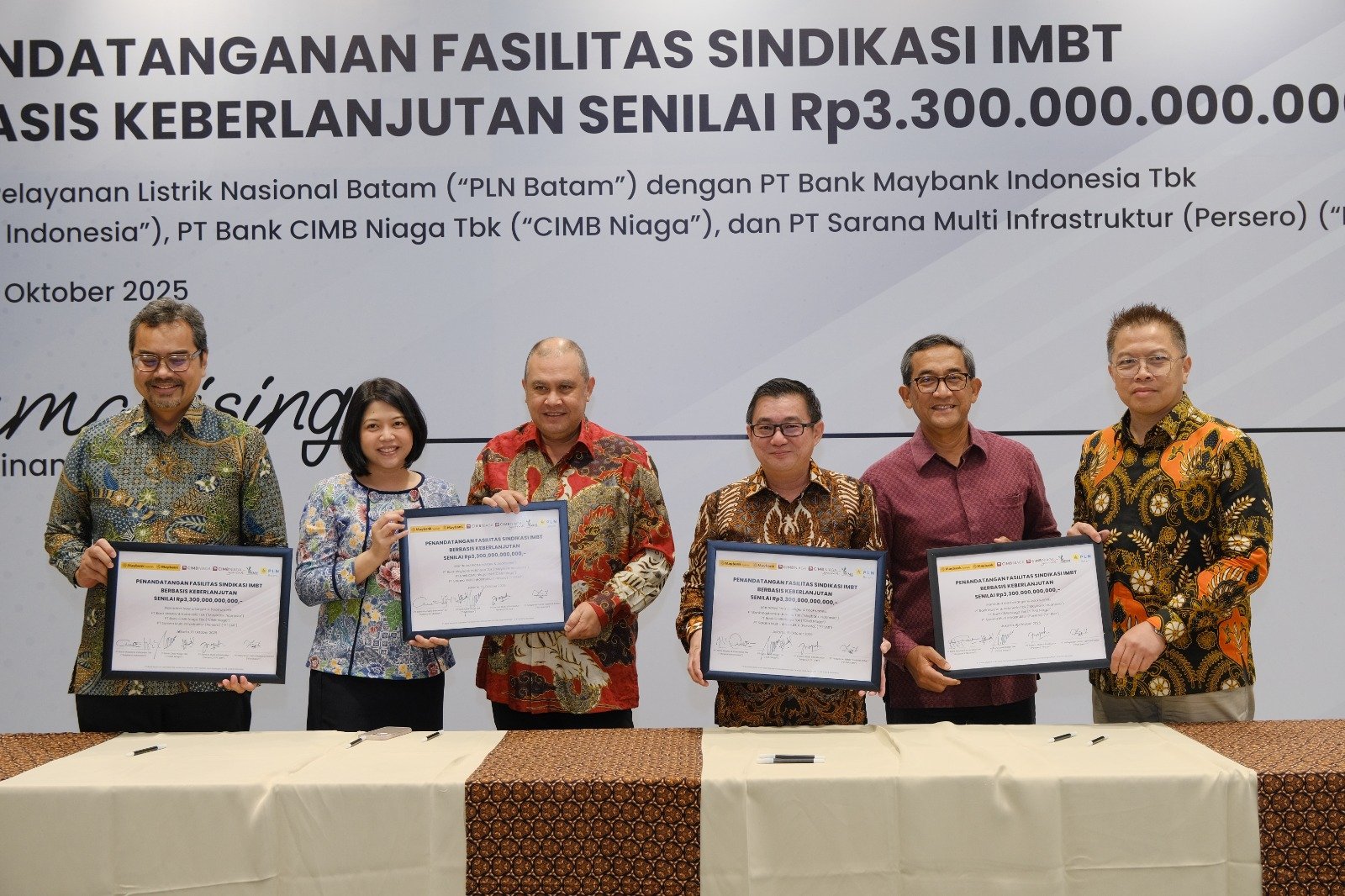 Jakarta, Owntalk.co.id – PT PLN Batam resmi menandatangani Perjanjian Fasilitas Sindikasi Pembiayaan berdasarkan prinsip Ijarah Muntahiyah Bittamlik (IMBT) bersama PT Bank Maybank Indonesia Tbk, PT Bank CIMB Niaga Tbk, dan PT Sarana Multi Infrastruktur (Persero).