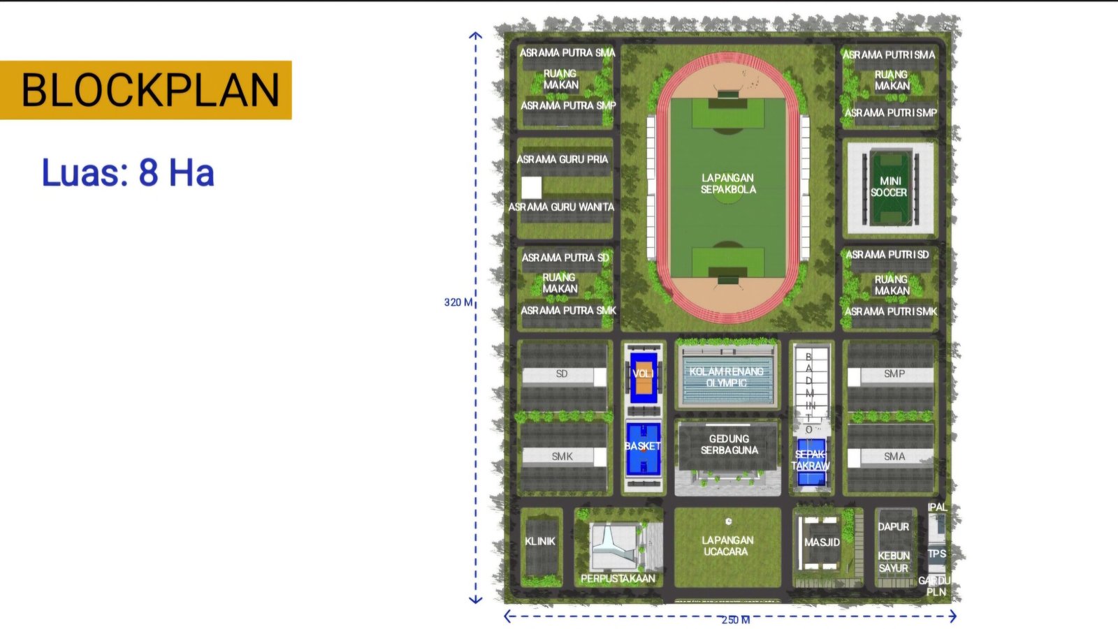 Masih kata Moris, bahwa SR akan dibangun di atas lahan seluas 16 hektar, dengan konsep Sekolah Terintegrasi SD, SMP dan SMK dengan sistem mondok.
