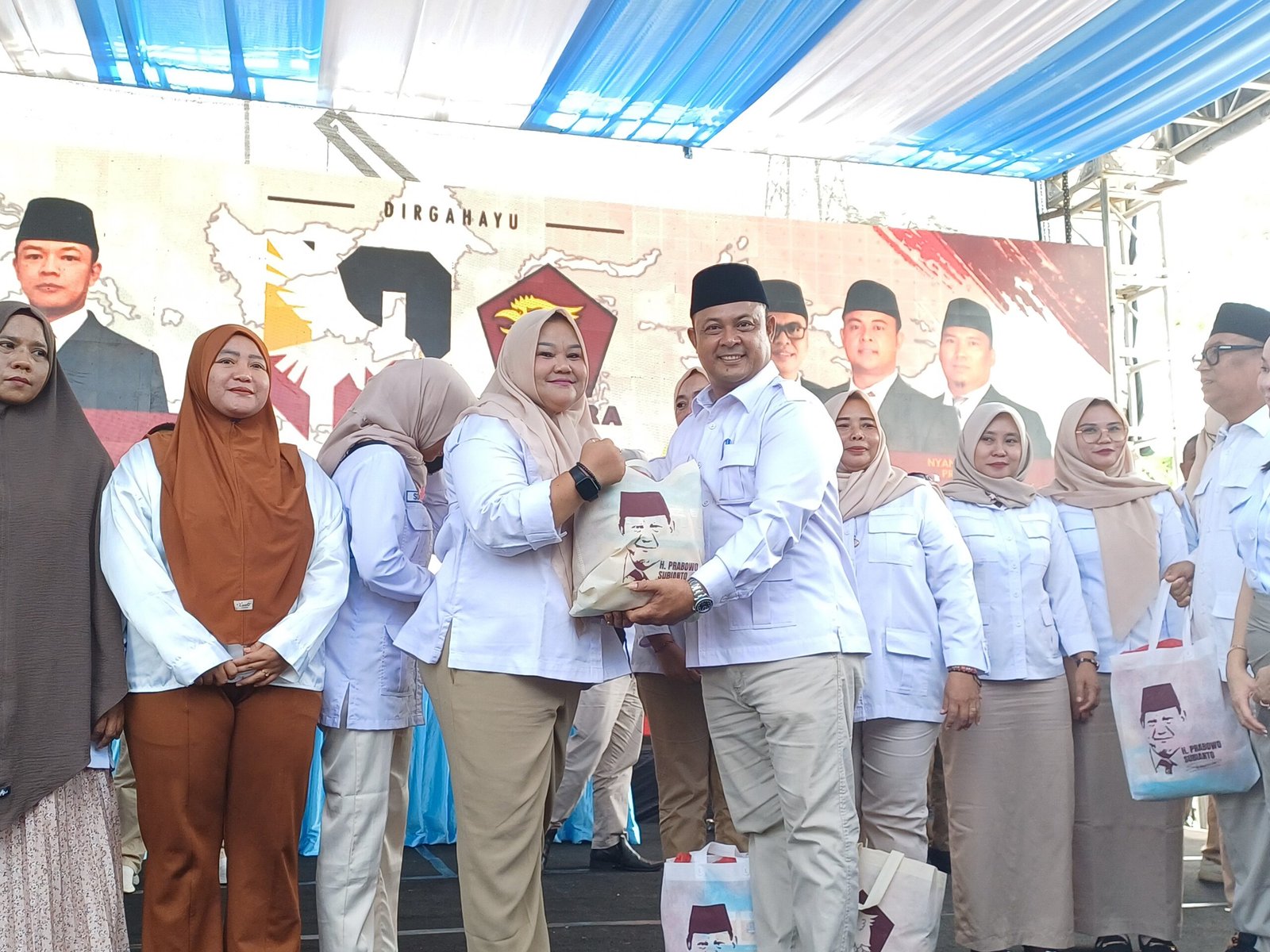 Ketua DPD Partai Gerindra Kepri Iman Sutiawan menyerakan Secara simbolis paket Sembako ke Salah satu perwakilan Simpatisan Partai Gerindra