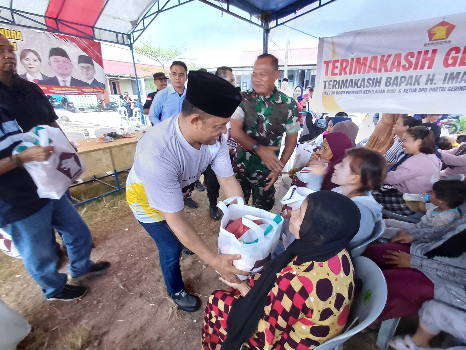 Ketua DPD partai Gerindra Kepri, Iman Sutiawan memberikan paket Sembako untuk Masyarakat Rabayu